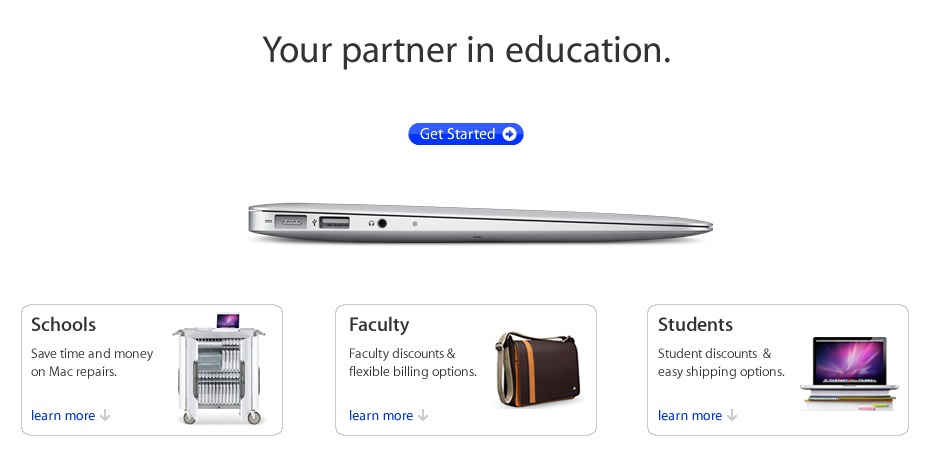 We've repaired over 40,000 Macs for districts, schools, faculty and students throughout the U.S. Across all 50 states, MacService helps schools large and small save big on their Mac repairs. Mac Repairs From accidental damage to out-of-warranty service, MacService offers significant savings over Apple. On average, our repair pricing is about 1/2 the cost of going through the Apple Store or Apple directly. We offer free, comprehensive diagnostics so you can decide what issues (if any) you want repaired. We use only new, original Apple service parts. All of our repairs are backed by industry beating warranties. Fast Turnaround Turnaround time is one of our greatest competitive advantages. We pre-stock parts and continually improve our service workflow to provide the fastest turnaround time while providing the highest level of quality. Most repairs are completed the same day they arrive at MacService. Service Made Easy No need to jump through any hoops, our PO process is easy. We offer Net 30 terms and a wide range of free shipping options. Learn more about how we can help your district or school save on their Mac repairs You use your Mac to help your students. Use us to help your Mac. Service on Your Schedule No appointment necessary. MacService can deliver a free shipping box to your home or school that includes all shipping and everything you need. You can track the status of your repair online 24/7, talk to an actual person and stay up to date with text alerts sent to your phone. Our goal is to get your Mac repaired and back to you fast, while making the process as easy and affordable as possible. Safe & Secure The security of your data is very important to us. We take great care to protect the security of your data and offer data recovery services in the event of a failed hard drive. For hard drive upgrades, your original drive and data are returned to you. Billing Made Easy Teachers deserve discounts too. We offer flexible payment options (including easy POs) and offer significant savings over the Apple Store. Sign up to get your teacher discount code and start saving today Getting your Mac back to you, good as new, as fast and cheap as possible. That's what we're all about. The Fastest, Easiest Way to Get Your Mac Fixed We started by asking, "What's the fastest, easiest way to get your Mac fixed?" and worked back from there. We know the frustration of the "liquid" spill before mid-terms and cracking the screen on a brand new laptop. We'll send a free laptop shipping box to wherever you are and get your Mac repaired and back to you as fast as possible. The Best Service at the Lowest Prices Ivy league service at community college prices. We offer a complete line of repairs and upgrades for your Mac at a fraction of the Apple Store price. Lots of Payment Options We're flexible. We accept all major credit cards, Paypal and Google Checkout. We can also bill a third party, i.e. slightly irritated but still loving parent. Get your Mac fixed for less with your free student discount code |
