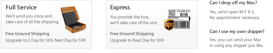 Our shipping container was custom designed by us to protect your Mac during its trip. It features removable foam inserts to provide a snug fit for your Mac. |